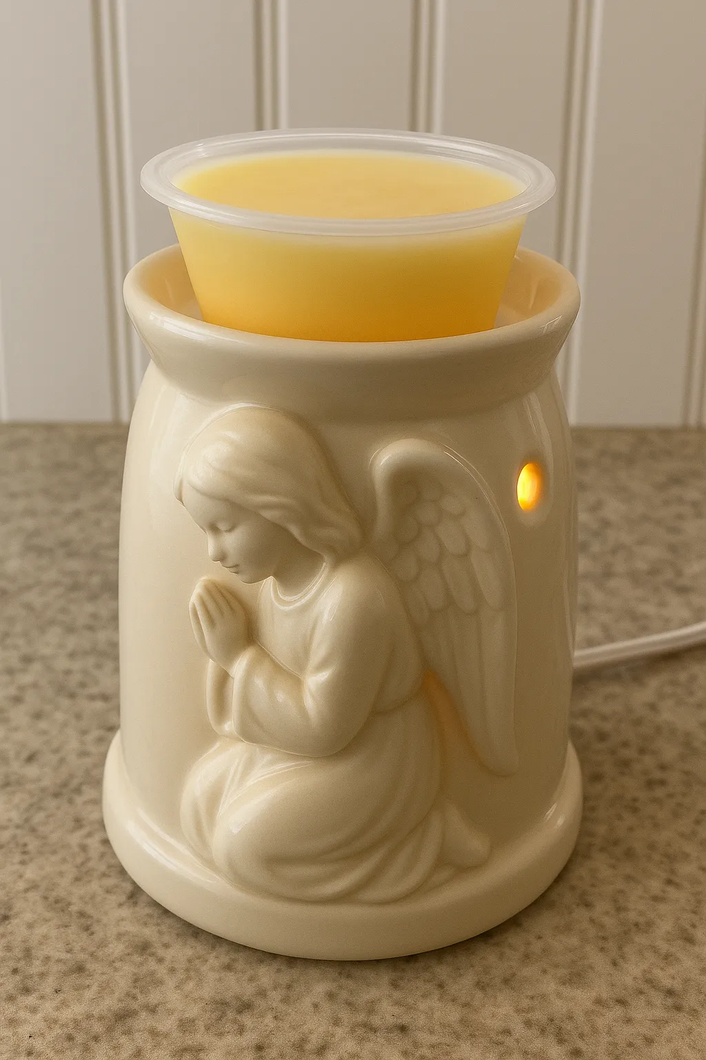 All of our wickles are white because colors are a contaminant and we don't use them. Pictures of colored wickles and warmers are for illustrative purposes only. At this time we're only selling the original flat warmers for our wickles.