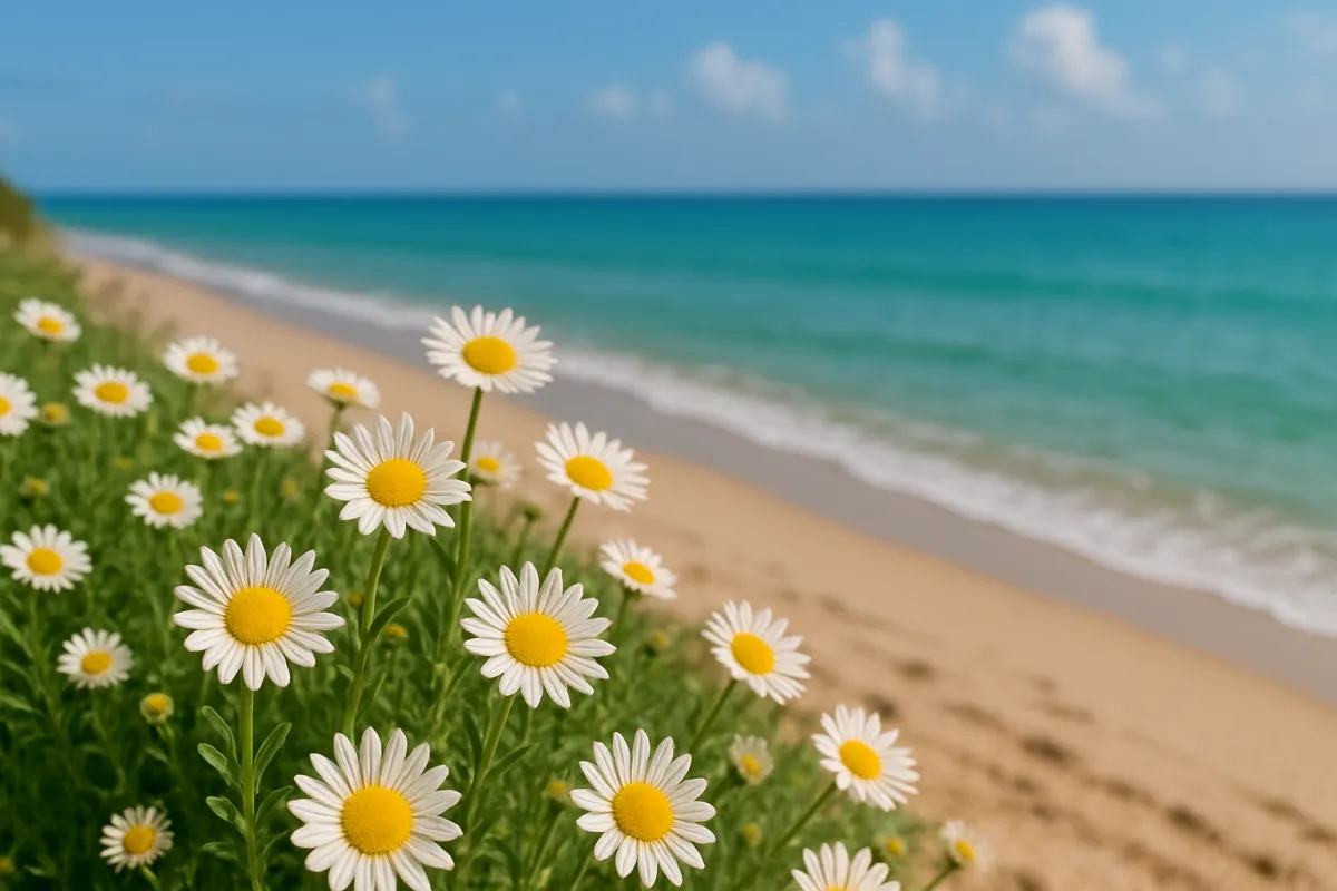 Imagine yourself walking on the shore edge and smelling the beach and flowers growing along the coastline.