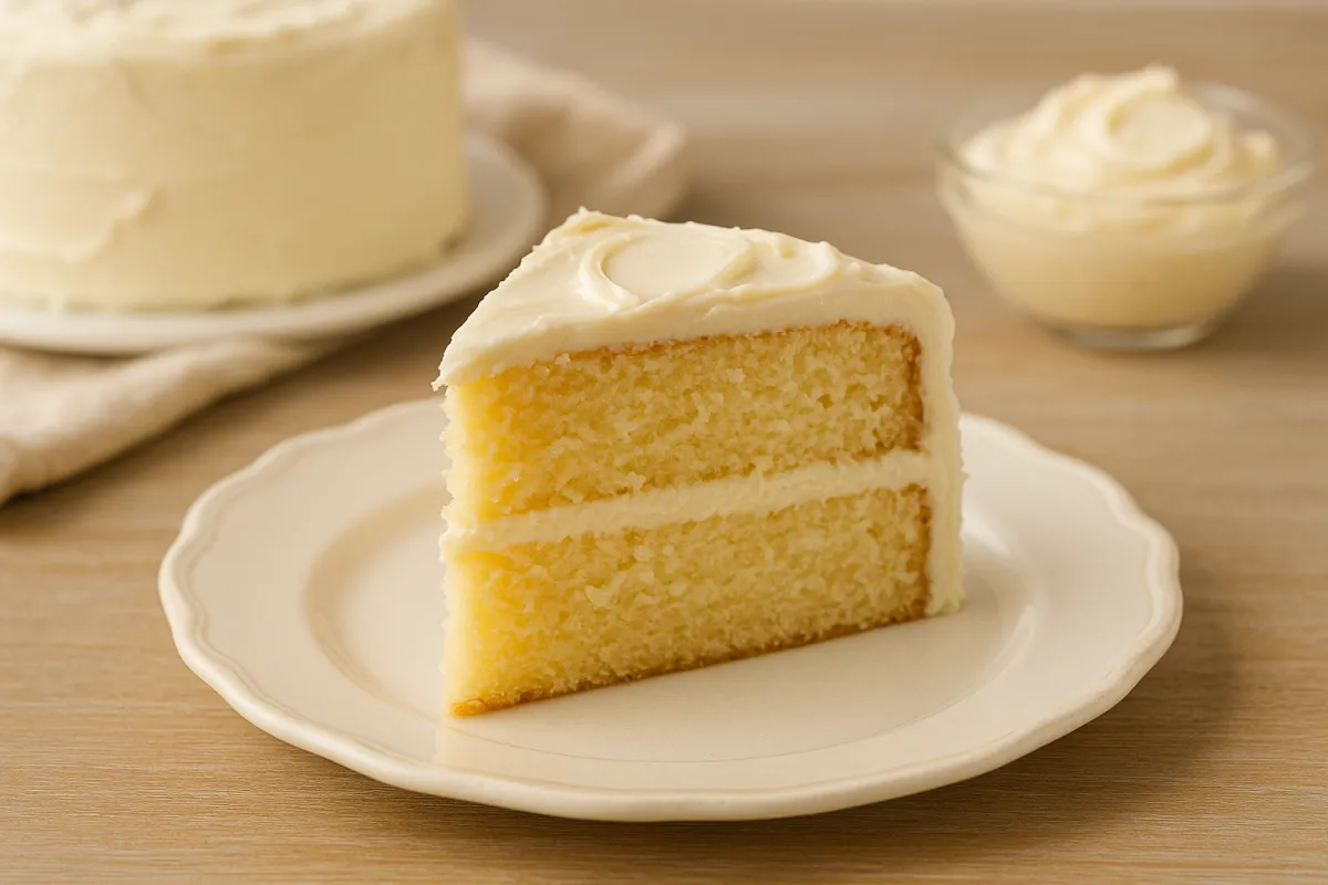 Buttercream icing surrounds this delectable cake confection. A luscious vanilla cake accord is sweetened with maple syrup for a perfect cake.