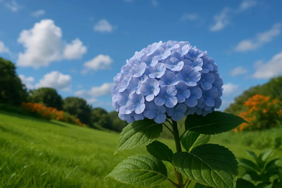 Breathtaking hydrangea sits on top of vibrant green accords under crisp, airy skies. Subtle breezes carry scents of orange flowers from nearby gardens.