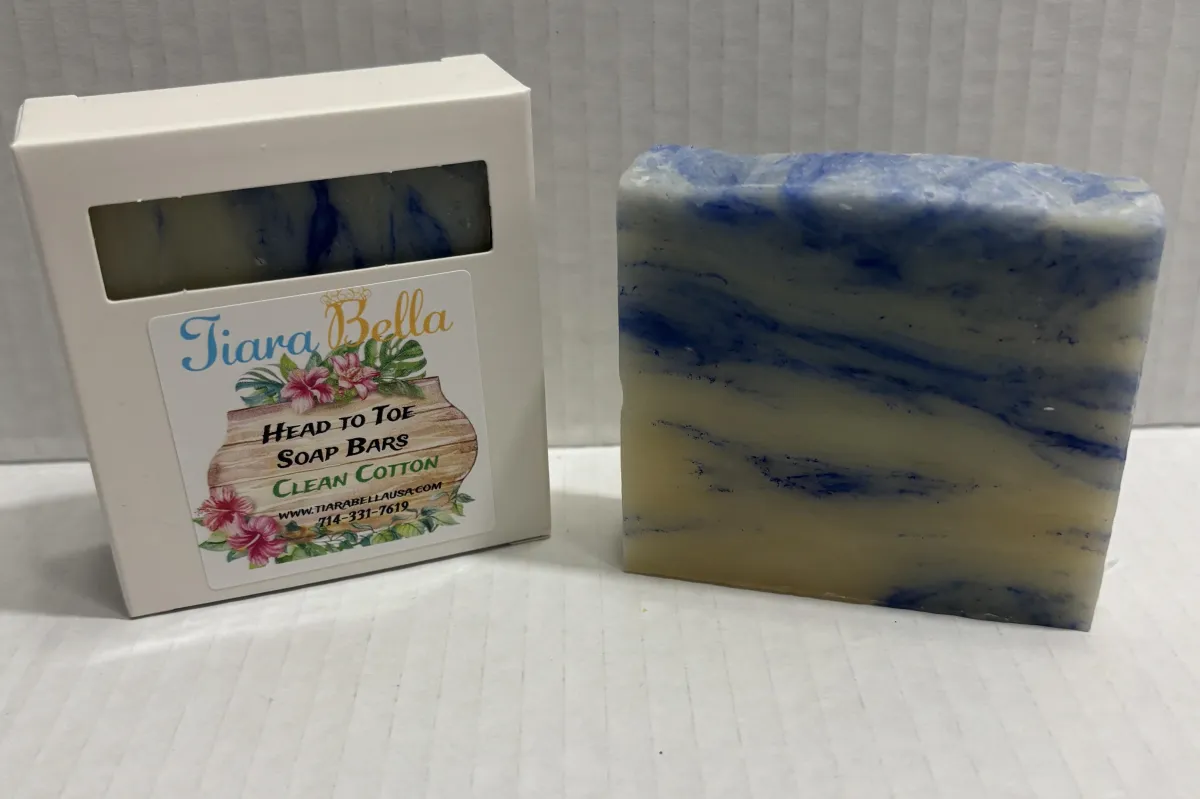 Our Tiara Bella Natural Soaps are good from head to toe. We currently have seven lovely scents to choose from, all specially made for our Tiara Bella USA customers. All of our soaps have been made in a cold-press process since we started. We have found these soaps have a gentler and more moisturizing feel. We pour our soaps into a slab mold and leave them with a rough textured top on them. Different oil combinations are used in each bar depending on the scents.